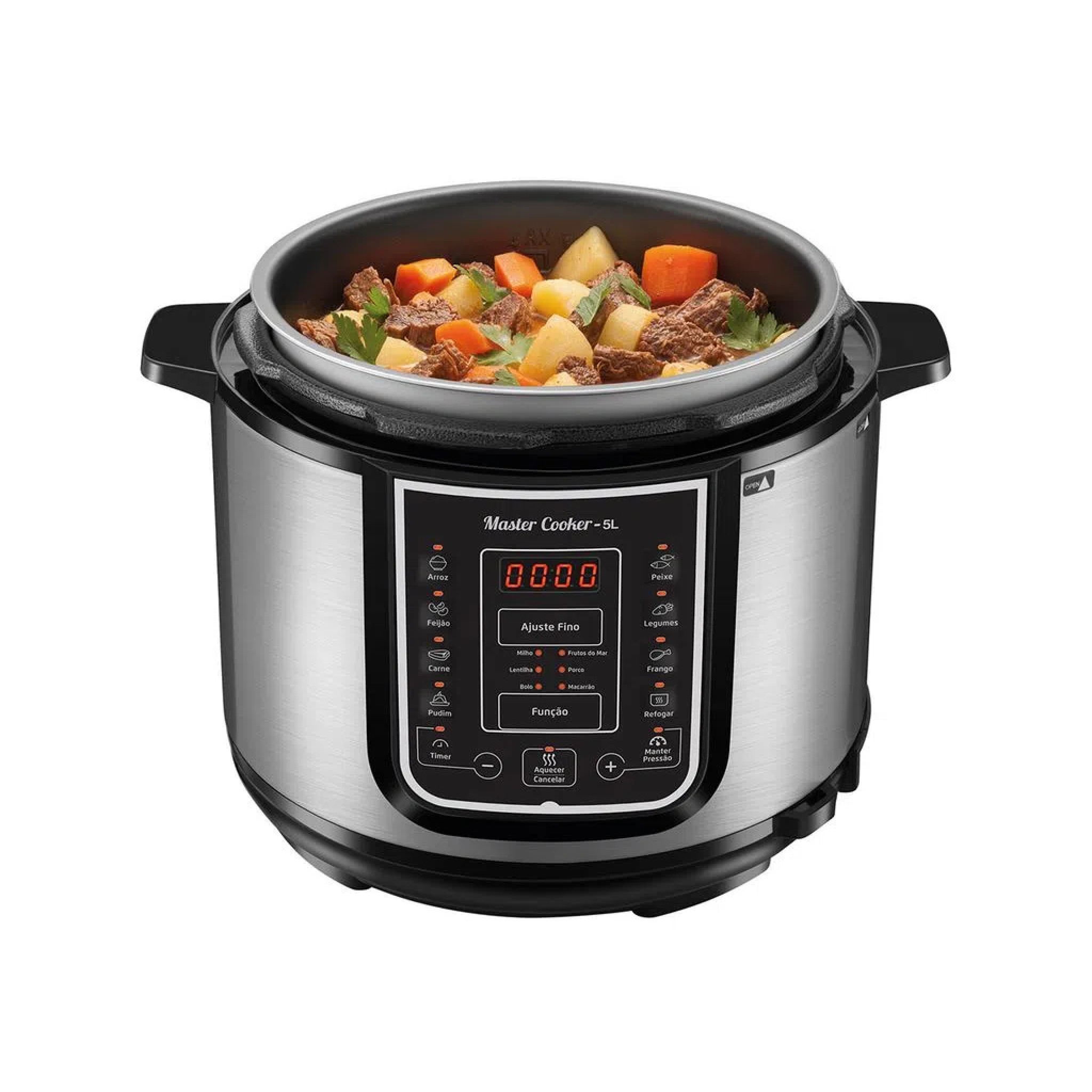Temporizador que permite programar el funcionamiento hasta con 24 horas de antelación. Prepara varias recetas como frijoles, sopa, arroz, arroz integral, pescado, cerdo, res, músculo, verduras, guisos, dulces.