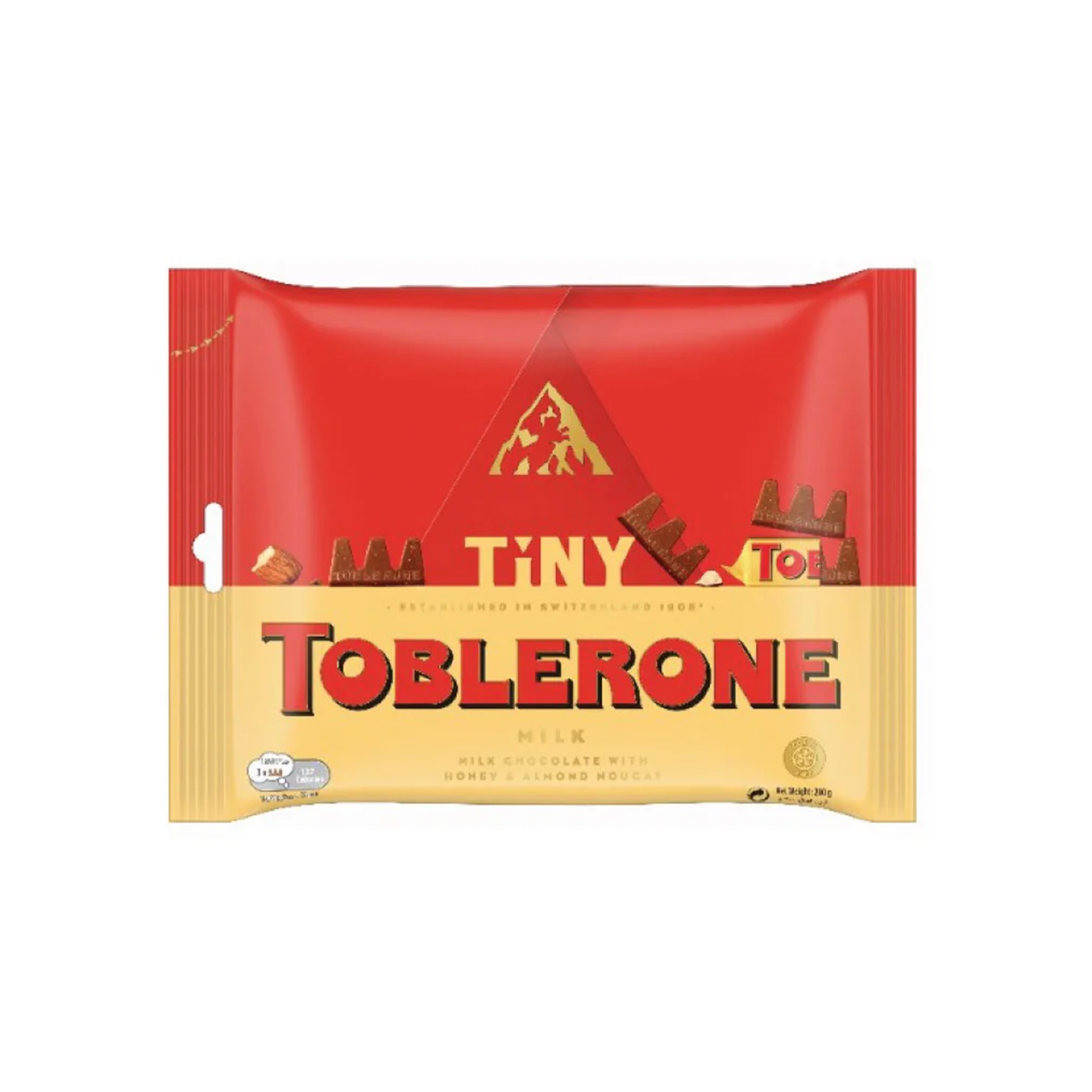 ESTE PAQUETE DE BOMBONES SUIZOS CON TURRÓN DE MIEL Y ALMENDRAS ES UNO DE LOS SABORES MÁS BUSCADOS EN LOS BOMBONES TOBLERONE. LOS CHOCOLATES CON LECHE TOBLERONE SON CONOCIDOS POR SU DELICIOSO SABOR Y SUS DISTINTIVAS FORMAS DE PRISMA. ESTE PAQUETE TAMBIÉN PUEDE SERVIR COMO UN GRAN REGALO PARA PRESENTAR EN VARIAS OCASIONES, INCLUIDOS CUMPLEAÑOS, EL DÍA DE SAN VALENTÍN, RECEPCIONES DE MATRIMONIO, ETC. SATISFAGA SUS ANTOJOS DE CHOCOLATE Y SABOREE CADA BOCADO DE ESTE DELICIOSO MANJAR.