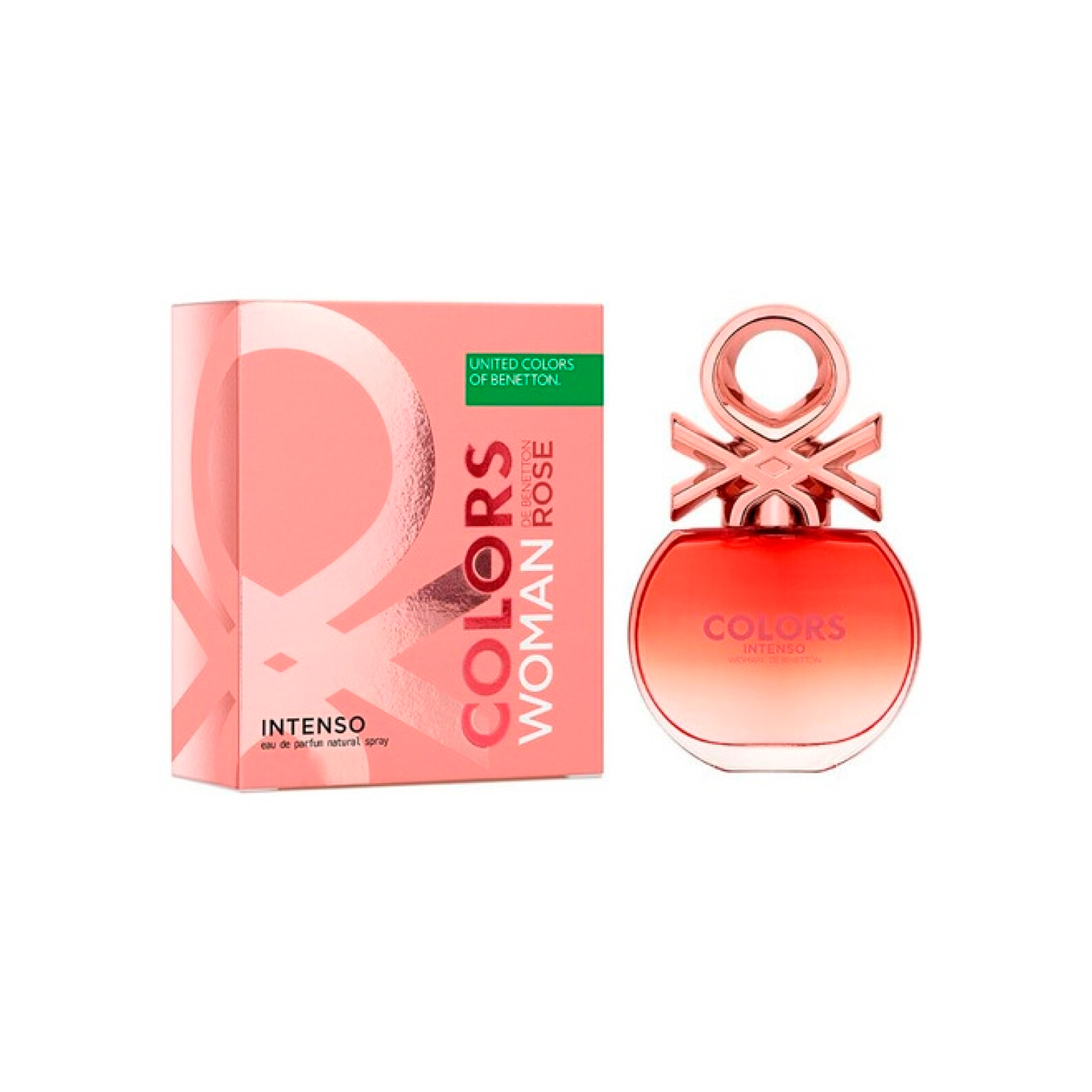 COLORS WOMAN ROSE INTENSO, UN ESTALLIDO NATURAL DE CÍTRICOS Y REFRESCANTES NOTAS VERDES HASTA UN CORAZÓN ESPECIADO FORMADO POR UN BOUQUET DE FLORES BLANCAS. EL FONDO COMPLETA EL PERFUME EN SU INTENSIDAD CON UN TOQUE ORIENTAL QUE SE FUNDE CON LAS MADERAS Y LA DULCE NATA MONTADA.