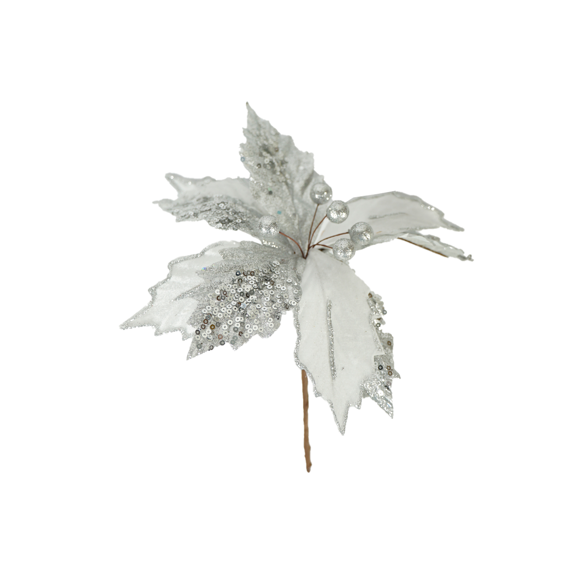 POINSETTIA NEVADO 20 CM GF130137 CREA UN AMBIENTE INVERNAL Y FESTIVO CON ESTA ELEGANTE POINSETTIA NEVADO DE 20 CM. SUS PÉTALOS CUBIERTOS CON UN TOQUE DE NIEVE ARTIFICIAL IMITAN LA BELLEZA DE UN PAISAJE INVERNAL, HACIENDO DE ESTA FLOR UN DETALLE PERFECTO PARA DECORAR TU HOGAR DURANTE LA NAVIDAD. IDEAL PARA CENTROS DE MESA, ARREGLOS O COMO ADORNO EN EL ÁRBOL.