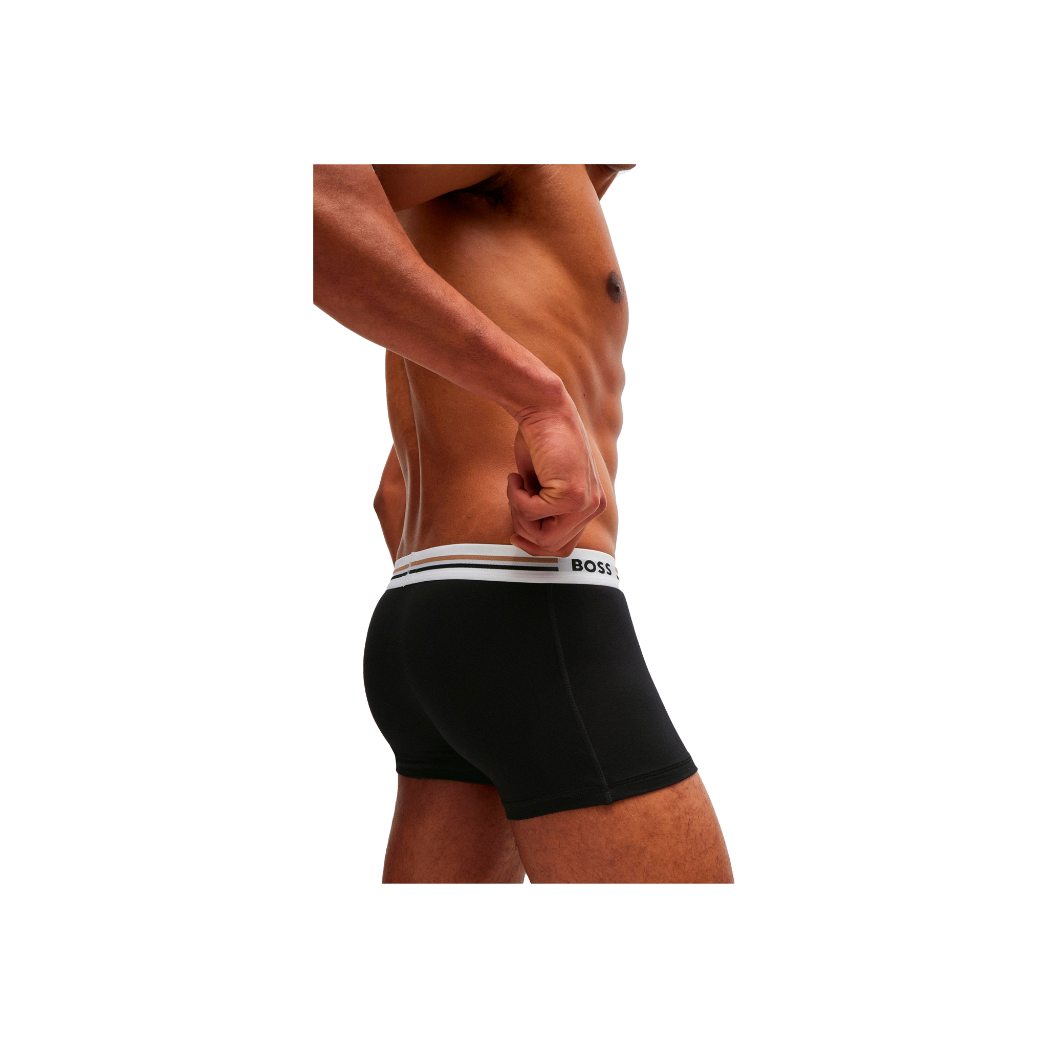 TRES PARES DE BAÚLES DISTINTIVOS DE BOSS. CON UNA RAYA DISTINTIVA Y LA MARCA EN LA CINTURILLA DE TIRO ESTÁNDAR, CADA PAR ESTÁ CONFECCIONADO EN TEJIDO ELÁSTICO. ESTE PRODUCTO ESTÁ ELABORADO CON FIBRAS DE CELULOSA, DERIVADAS DE MADERA NATURAL EN BRUTO Y PROCEDENTE DE BOSQUES GESTIONADOS DE FORMA RESPONSABLE. COOPERAMOS CON ORGANIZACIONES EXTERNAS PARA GARANTIZAR UN TRATO RESPETUOSO DE LOS BOSQUES VÍRGENES Y EN PELIGRO DE EXTINCIÓN.