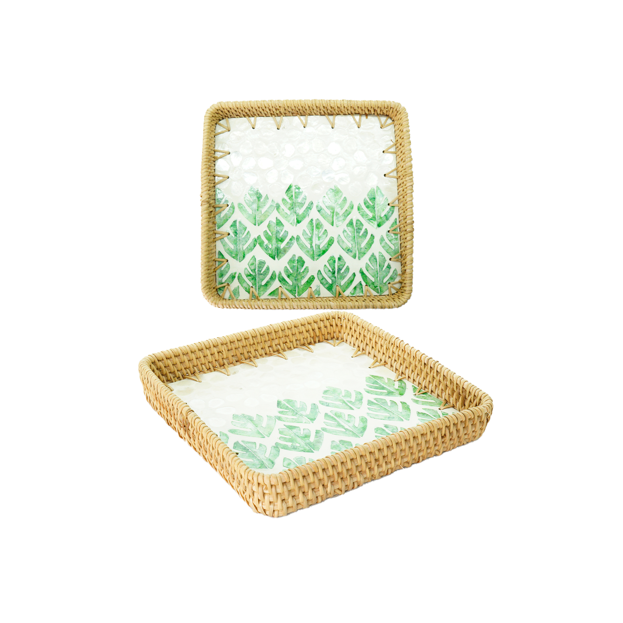 BANDEJA RATTAN CONCHA QUAD 21X21X3 9304B