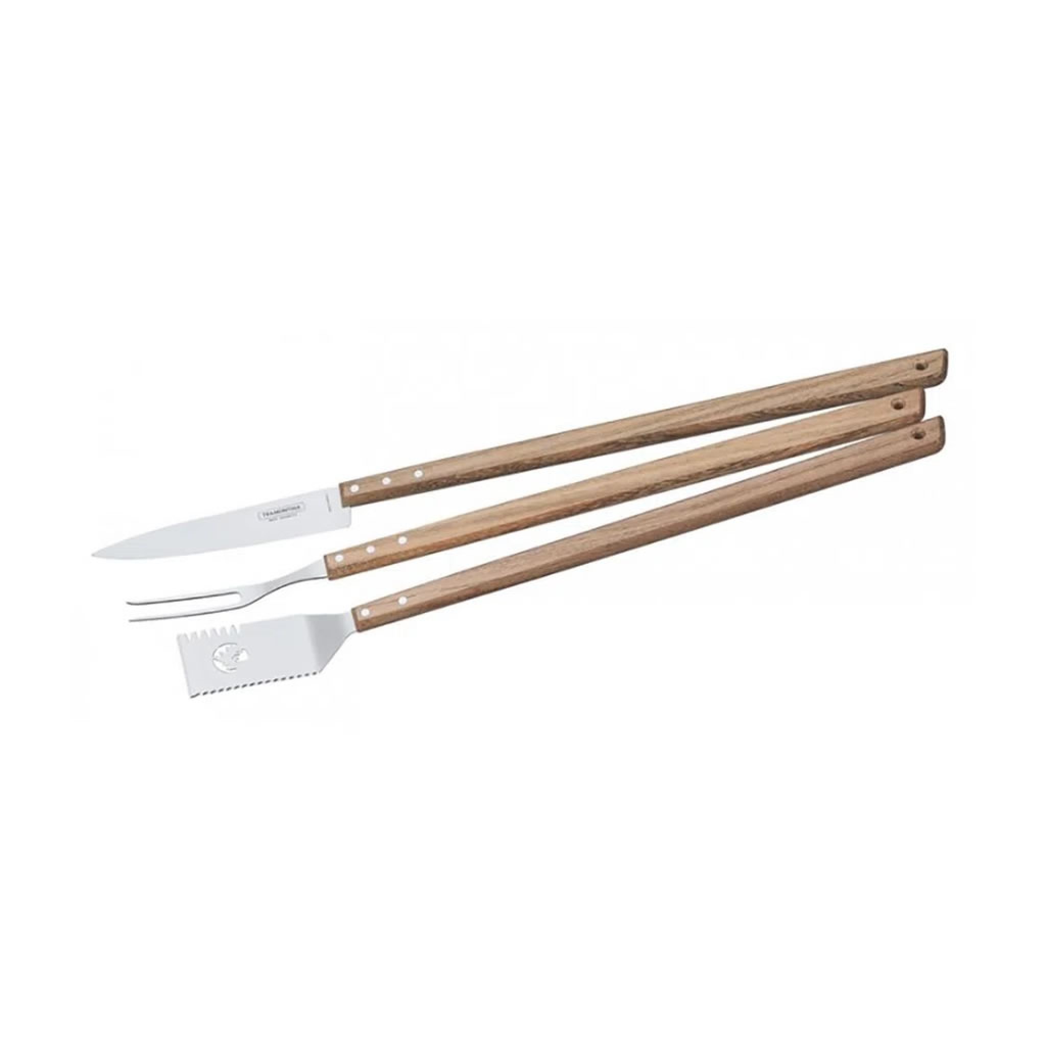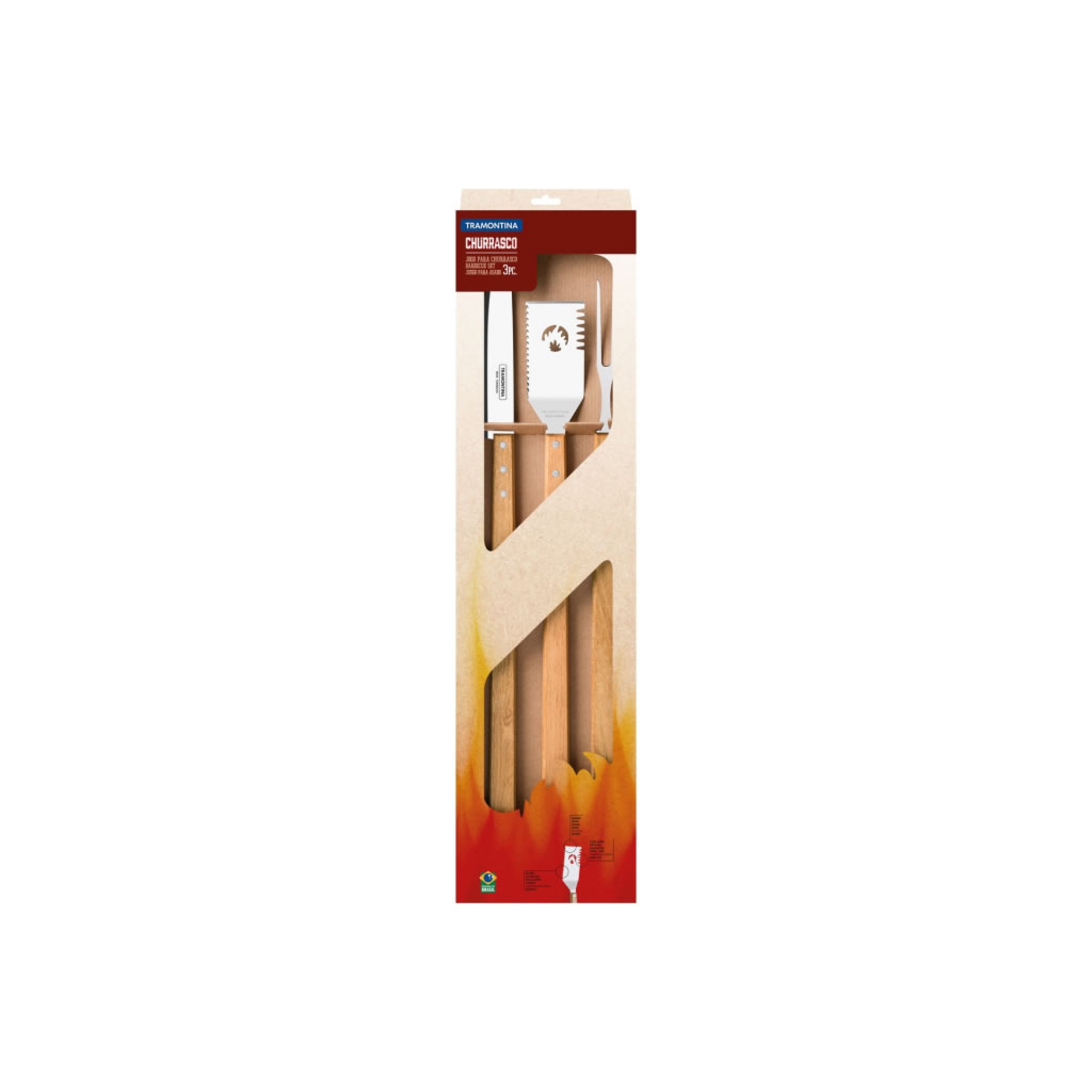 CADA ASADOR SABE LO QUE SE NECESITA PARA QUE SU BARBACOA SEA PERFECTA. POR ELLO, LA LÍNEA CHURRASCO OFRECE LAS PIEZAS IDEALES PARA EL MOMENTO. CON EL JUEGO DE BARBACOA TRAMONTINA CON HOJA DE ACERO INOXIDABLE Y MANGO DE MADERA DE 3 PIEZAS DE LA LÍNEA CHURRASCO, PODRÁ CREAR LOS MEJORES CORTES CON UN SABOR SORPRENDENTE. EL JUEGO CUENTA CON CUCHILLO, TENEDOR PARA TRINCHAR Y ESPÁTULA MULTIFUNCIONAL, LO QUE HACE AÚN MÁS PRÁCTICO EL MOMENTO DE SERVIR. LAS PIEZAS SE ELABORAN CON HOJAS DE ACERO INOXIDABLE Y MANGOS DE MADERA, GARANTIZANDO SU CALIDAD Y LLEVANDO PRODUCTOS RESPETUOSOS A TU HOGAR.