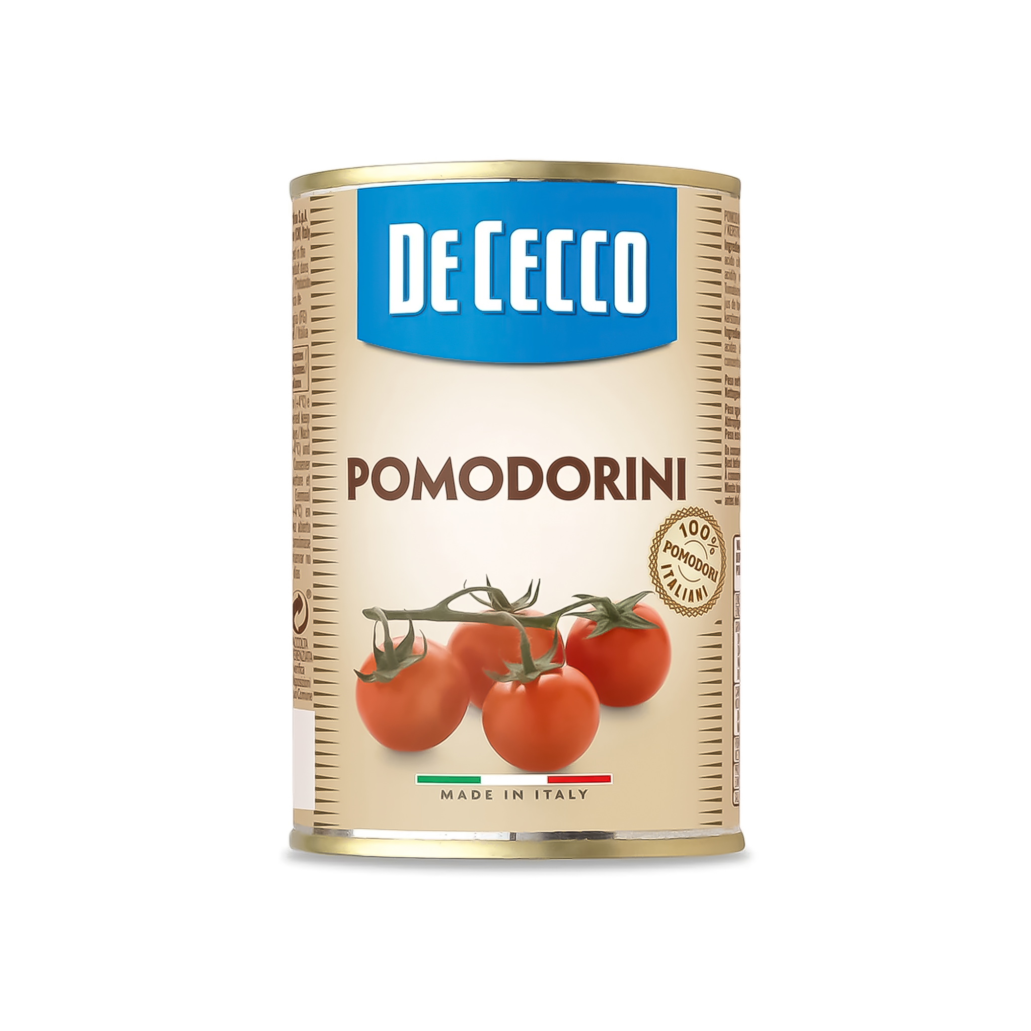 DELICADOS TOMATES CHERRY BAÑADOS EN UN LIGERO JUGO DE TOMATE. LOS TOMATES DE CECCO SON UNA ESPECIALIDAD DEL SUR DE ITALIA, DONDE MADURAN EN UN CLIMA CÁLIDO Y SECO QUE LES CONFIERE UN SABOR PARTICULARMENTE DULCE, FRESCO Y DELICADO. IDEAL PARA PLATOS DE PESCADO Y PARA CONDIMENTAR TU PIZZA CON IMAGINACIÓN. DE CECCO SÓLO UTILIZA TOMATES CULTIVADOS EN ITALIA Y COSECHADOS EN EL PUNTO DE MADURACIÓN ADECUADO, PARA LLEVAR A TU MESA EL AROMA Y EL SABOR TÍPICOS DE LOS TOMATES ITALIANOS. DISPONIBLE EN LATAS DE 400 G.