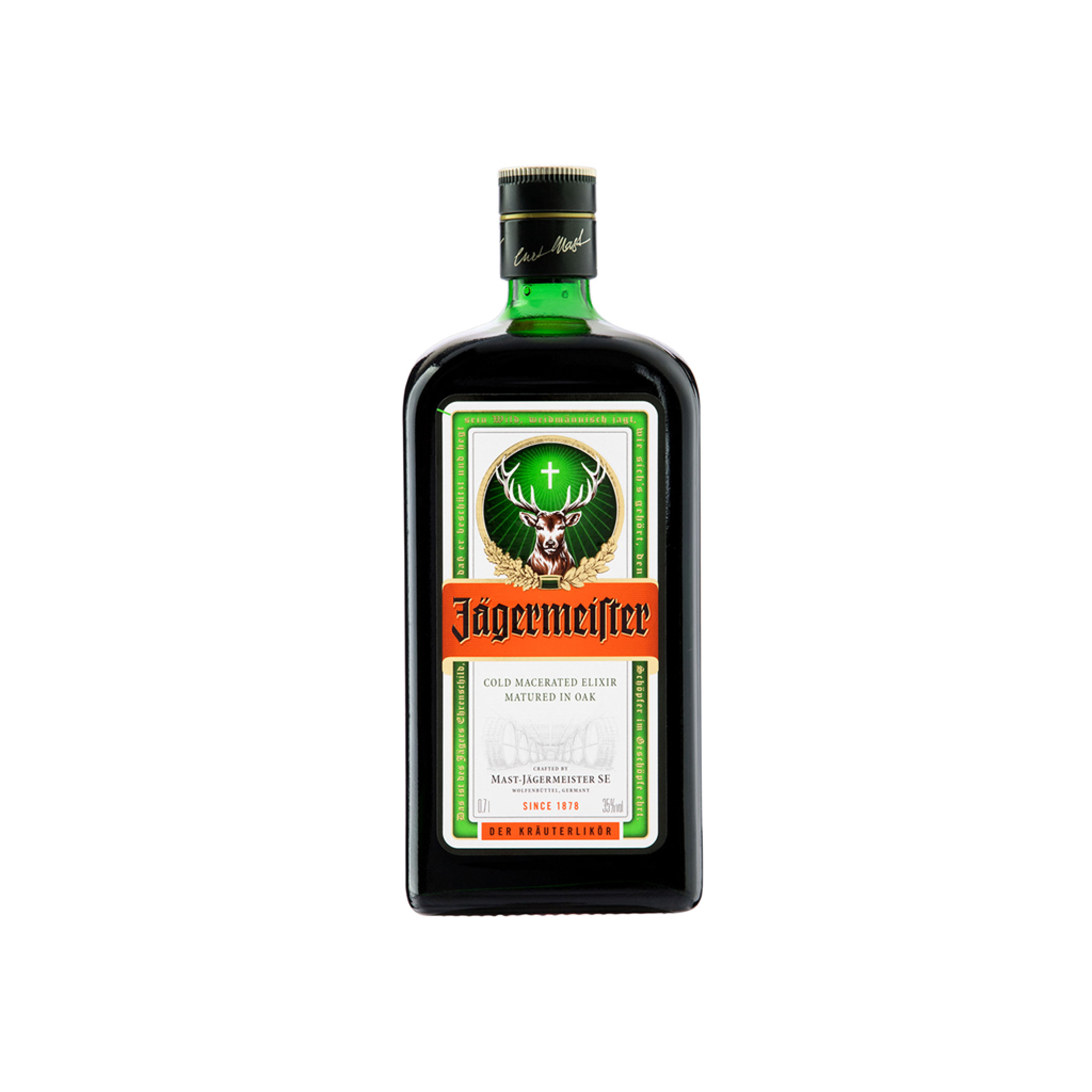 Aperitivo Jagermeister Características: Jägermeister es una bebida alcohólica producida en Alemania desde 1935. Es el 9° destilado más consumido en el mundo. Jägermeister está compuesto por 56 hierbas, frutas y raíces que lo convierten en una bebida única, exótica y versátil. Su versatilidad brinda las más variadas bebidas, siendo la más famosa en el mundo la JägerBomb, que es la mezcla con bebida energética. Consumo: la forma preferida de beber jägermeister en todo el mundo es servirlo directamente del congelador como un trago, ¡delicioso!