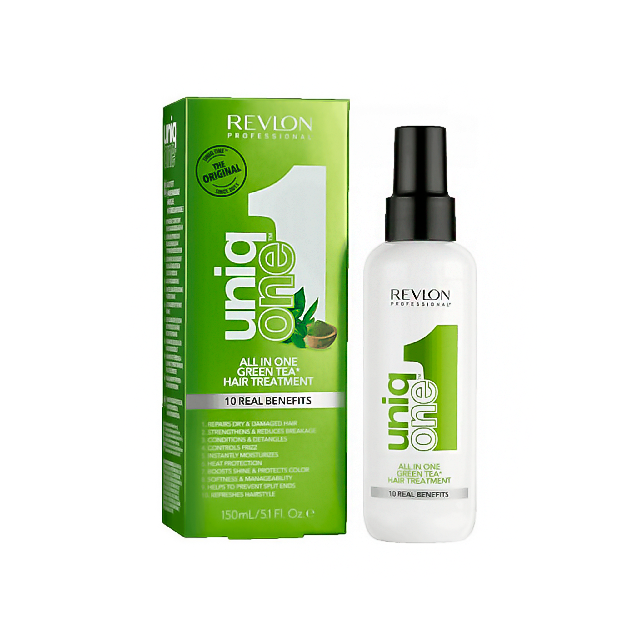 EL TRATAMIENTO CAPILAR UNIQ ONE ​​ALL IN ONE GREEN TEA ES UNA MASCARILLA SIN ACLARADO QUE OFRECE MUCHOS BENEFICIOS PARA TODO TIPO DE CABELLO. EL CABELLO QUEDA MÁS SUAVE, SEDOSO, SANO, CON UN BRILLO INTENSO Y UNA FRAGANCIA FRESCA Y PURA DE TÉ VERDE.