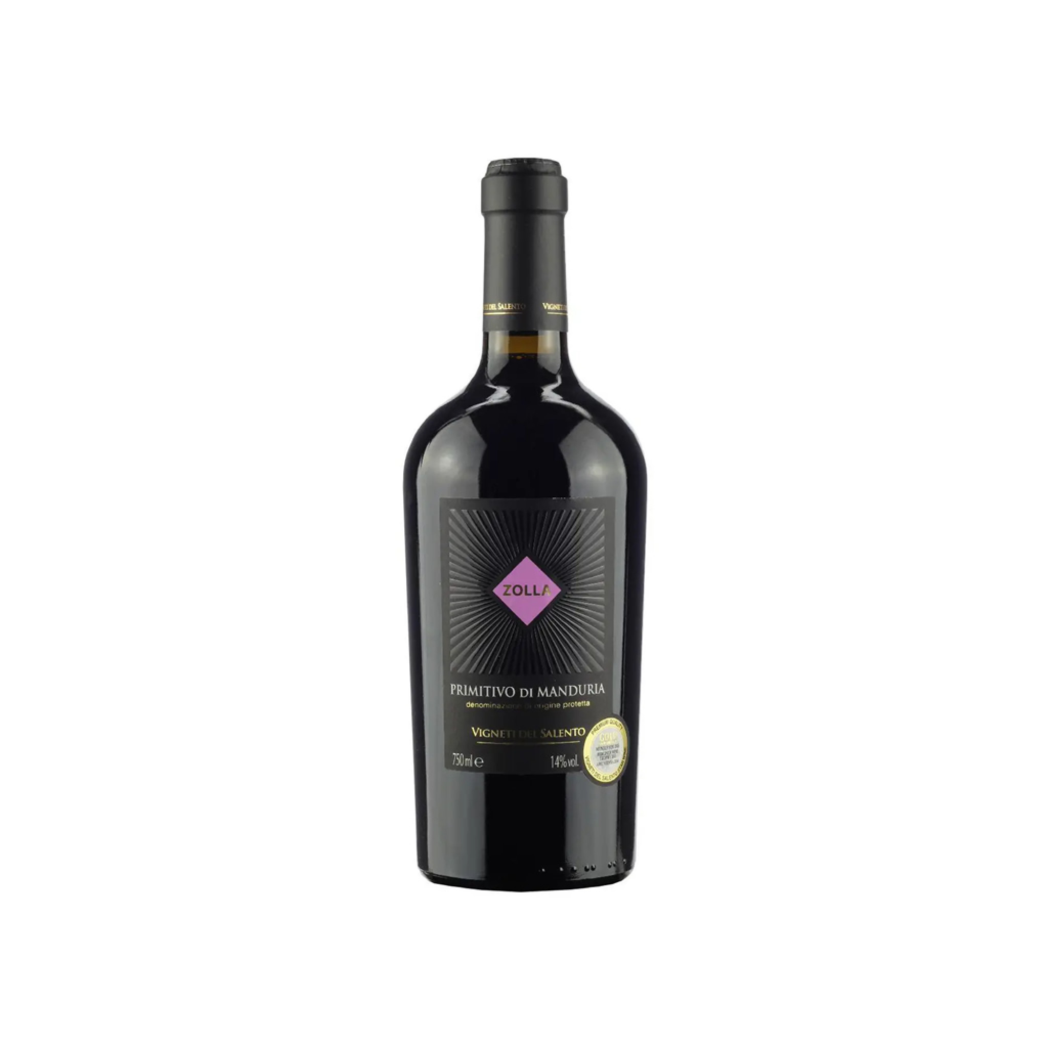 Zolla Primitivo destaca por su forma de botella denominada Imperio, que recuerda los orígenes de las primeras botellas de vino en copa durante el Imperio Romano. La línea 'viejas' se llama así porque las vides con las que se elaboran tanto Primitivo di Manduria como Negroamaro son vides centenarias, con un rendimiento por hectárea muy bajo y con una concentración de azúcares muy alta.Grado Alcohólico: 14,0%